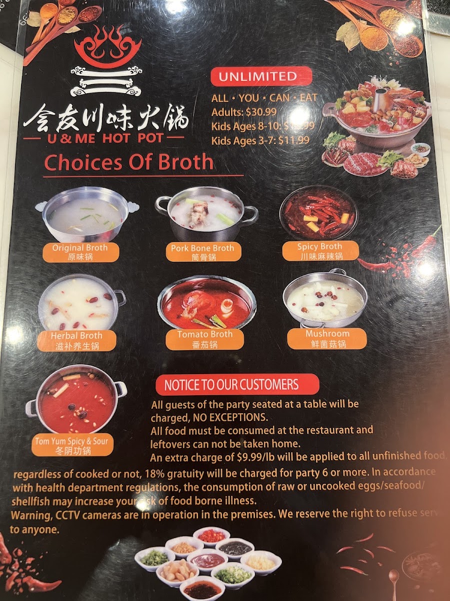 “ Got to Orlando, FL late and the only place open late is U & Me Revolving Hot Pot. The service was great, clean place and decent options to choose from. Too bad there is only 4 select for meats (beef, chicken, pork & lamb). We all got the Tum Yum soup and it was a solid choice. Overall is a pretty good place to eat as well it open till midnight. ”